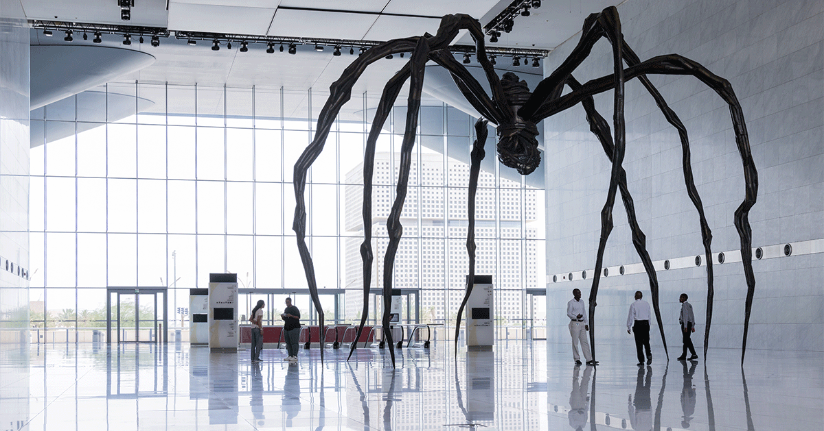 Fabricada en mármol, bronce y acero inoxidable, Maman mide 9,1 metros de altura y se encuentra en el Centro Nacional de Convenciones de Qatar dentro de la Fundación Qatar. Aunque de forma abstracta, el trabajo de Louise Bourgeois es profundamente autobiográfico y explora temas de traición, ansiedad y soledad. Una de las creaciones más famosas de Bourgeois, esta icónica araña de acero es un homenaje amoroso a su madre, una tejedora francesa cuyo meticuloso arte y fuerza inspiraron la imponente presencia de la escultura.