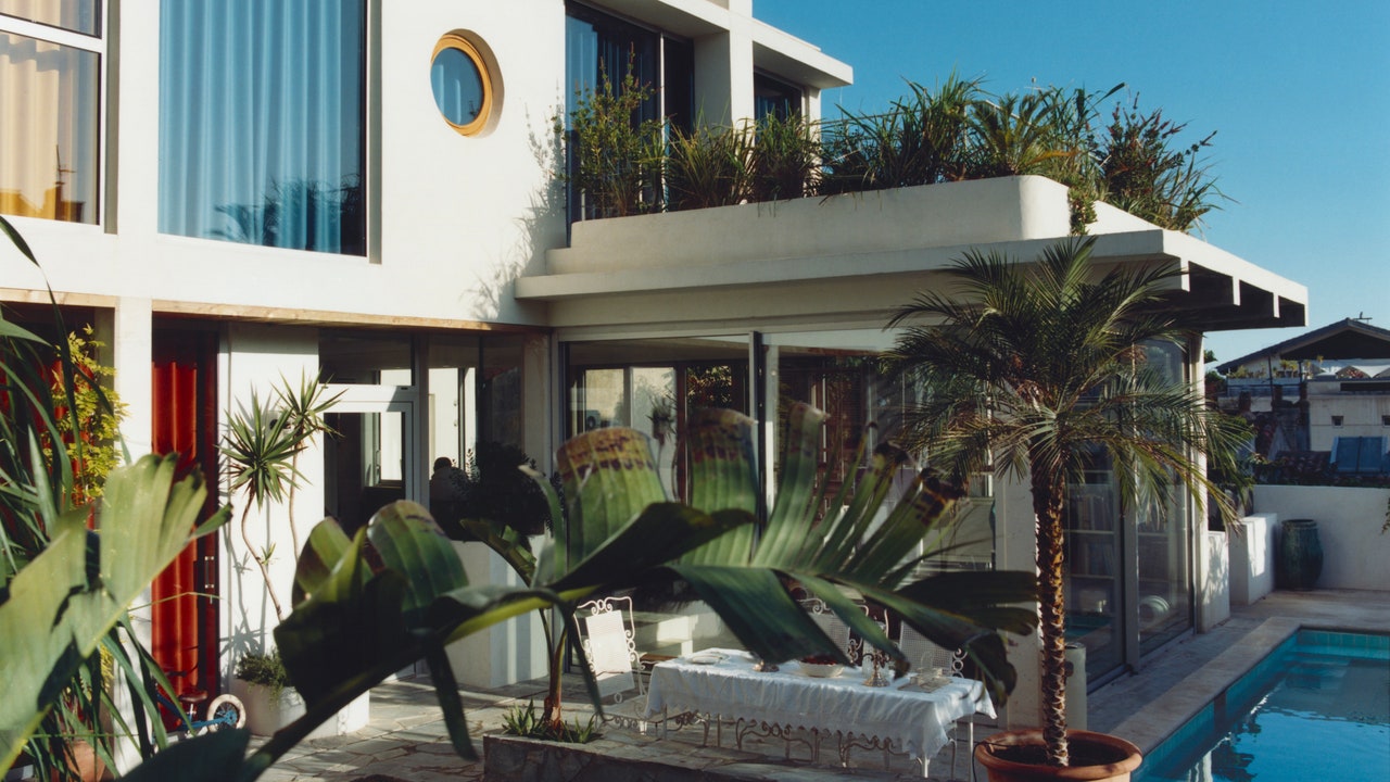 La inspiración californiana de la casa se mezcla con el estilo mediterráneo, otro de los estilos preferidos del interiorista, apasionado por preservar los materiales locales. La piedra utilizada para las baldosas de la piscina, por ejemplo, procede de una cantera a menos de dos horas en coche desde Marsella. campo. El apartamento tiene un aire náutico gracias a muchos elementos de madera, incluidas encimeras lacadas que son «muy brillantes, como las que se ven en algunos barcos viejos». Las paredes exteriores también están pintadas de blanco. Las ventanas ocupan las tres cuartas partes del área exterior y están adornadas con telas coloridas. «Quería que la fachada tuviera un aspecto diferente cuando las cortinas están cerradas. Cuando están abiertas, la casa es blanca y transparente. Cuando las cierras, la situación cambia completamente.