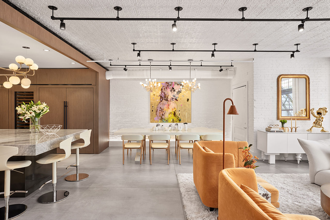 Escondido en el bullicioso barrio de SoHo, un loft de 2000 pies cuadrados cuidadosamente diseñado combina elegancia moderna con encanto lúdico. Con tres dormitorios, tres baños y una oficina en casa, la casa refleja la visión de los propietarios holandeses y finlandeses, que buscaban combinar las raíces europeas con el espíritu vibrante de la ciudad de Nueva York.