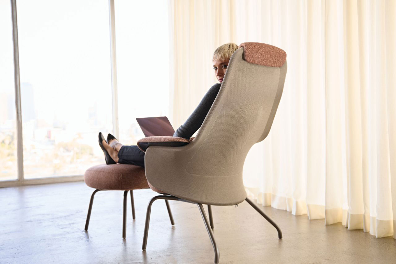 Aarea Lounge es lo último en multitarea, ya sea para uso formal, para sentarse erguido o para descansos relajantes. «A través de Aarea, las personas pueden ingresar a un entorno que se adapta a su estado de ánimo o mecanismo de trabajo», explicó Pearson. «Está diseñado para diferentes modos dentro de la oficina».