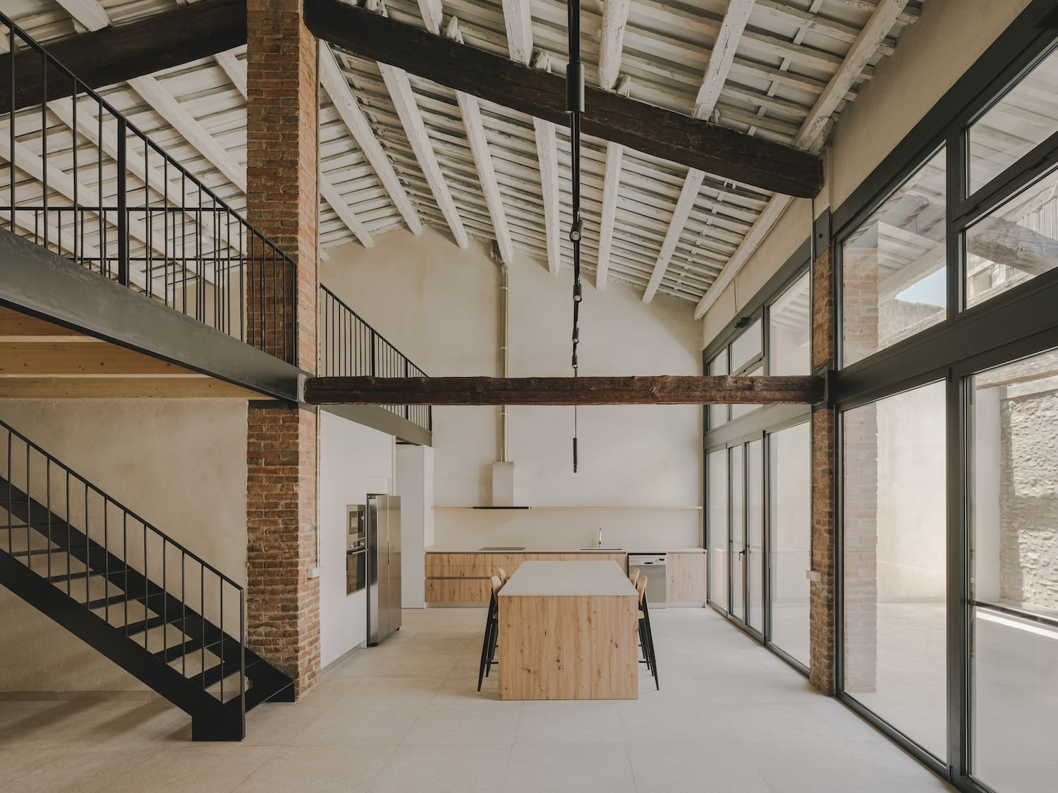 Migdía II es una casa minimalista ubicada en Tarragona, España, diseñada por Estudio VVAA. En el corazón de Ulldecona, una nave del siglo XIX cuenta la historia del comercio, la industria y la transformación. Originalmente un testimonio del auge comercial de la era del ferrocarril, con todo, desde una licorería local hasta una imprenta, la casa ha sido cuidadosamente reinventada como una casa contemporánea que respeta su ADN industrial y al mismo tiempo abraza la vida familiar moderna.