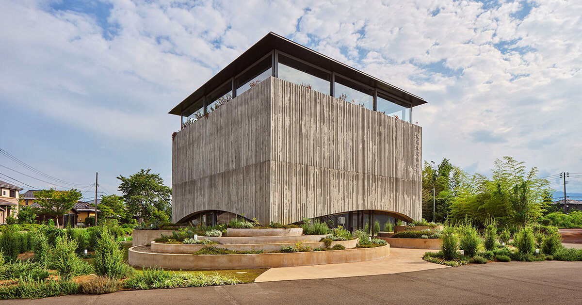 En el tranquilo paisaje de la ciudad de Joetsu, Japón, Masaki Takeru Takayuki Shimada de la Oficina de Investigación y Diseño de EA y Takayuki Shimada de la Oficina de Investigación y Diseño de EA presentan Echigo Herb Distillery, un espacio que alberga el proceso de elaboración artesanal de la ginebra. El edificio de tres pisos utiliza acero. específico, aceroy madera Creando una forma que parece sólida pero flotante. Cuatro grandes aberturas arqueadas que se extienden horizontalmente conectan la estructura con el entorno natural en cuatro puntos de las esquinas, al tiempo que dan la ilusión de que flota sobre el paisaje. Terrazas artificiales y caminos conducen desde los jardines hasta la bodega. En estas terrazas también se ubican equipos de destilación, en las que se plantan bayas de enebro y otras plantas utilizadas en la elaboración de ginebra, integrándose el proceso de producción en el propio edificio. Los cuatro soportes de las esquinas se tratan como elementos de jardín, realzando aún más la sensación de ligereza hacia arriba.