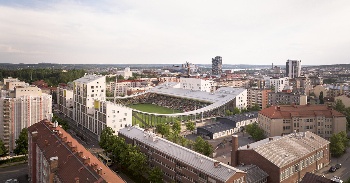JKMM Architects diseña el primer estadio híbrido de Finlandia que incorpora espacios residenciales, comerciales y públicos