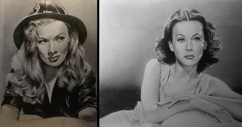 La mayoría de estos dibujos son de celebridades del cine de hace décadas. Las dos últimas imágenes muestran a una actriz que todavía aparece en nuestras pantallas. Los hay tanto pequeños como grandes.