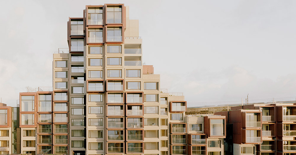 Las nuevas extensiones de balcones revestidas de cobre brindan espacio al aire libre a todos los apartamentos