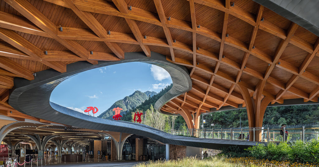 Ubicada a la entrada del Parque Nacional de Jiuzhaigou dentro del Sitio del Patrimonio Mundial de Jiuzhaigou, la Instalación de Servicios para Visitantes de Jiuzhaigou es un proyecto de reconstrucción posterior al terremoto diseñado para recibir hasta 41.000 visitantes por día y al mismo tiempo proteger el patrimonio natural y cultural de la zona. El diseño incorpora resiliencia sísmica a través de una evaluación exhaustiva del sitio y el uso de estructuras prefabricadas para minimizar el impacto ambiental.