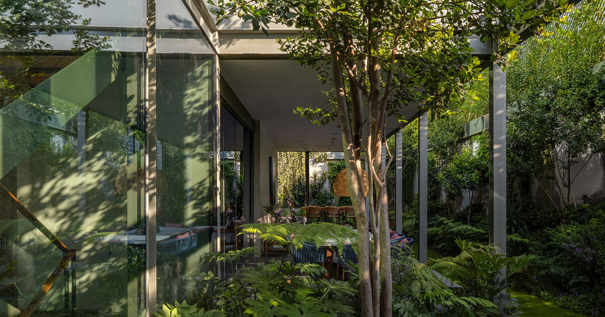 C Lawpatos, ubicado en un área residencial de baja densidad Ciudad de MéxicoSu objetivo es enfatizar la apertura del espacio y la integración del espacio interior y exterior. El área del lugar es de 400 metros cuadrados, el ancho de la calle es de 10 metros y la profundidad es de 40 metros. El jardín periférico similar al bosque de fog de nubes rodea los tres lados de la estructura de acero y vidrio, y la brecha entre el jardín central mejora la relación entre el interior y el exterior y ayuda a ajustar la temperatura.