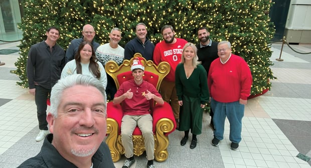 La familia Ryan y Jones: finalizan el éxito de 2024 de una manera hermosa, Ryan y su esposa Kathy (izquierda) se reunieron con Seth Jones de LM y su familia de izquierda a derecha, Evey, Adrianne y Boyd llevaban sudadera de Spider -Man’s – En sus restaurantes mexicanos favoritos, El Patron para el almuerzo en Baldwin, Kansas. (Foto: personal de LM)