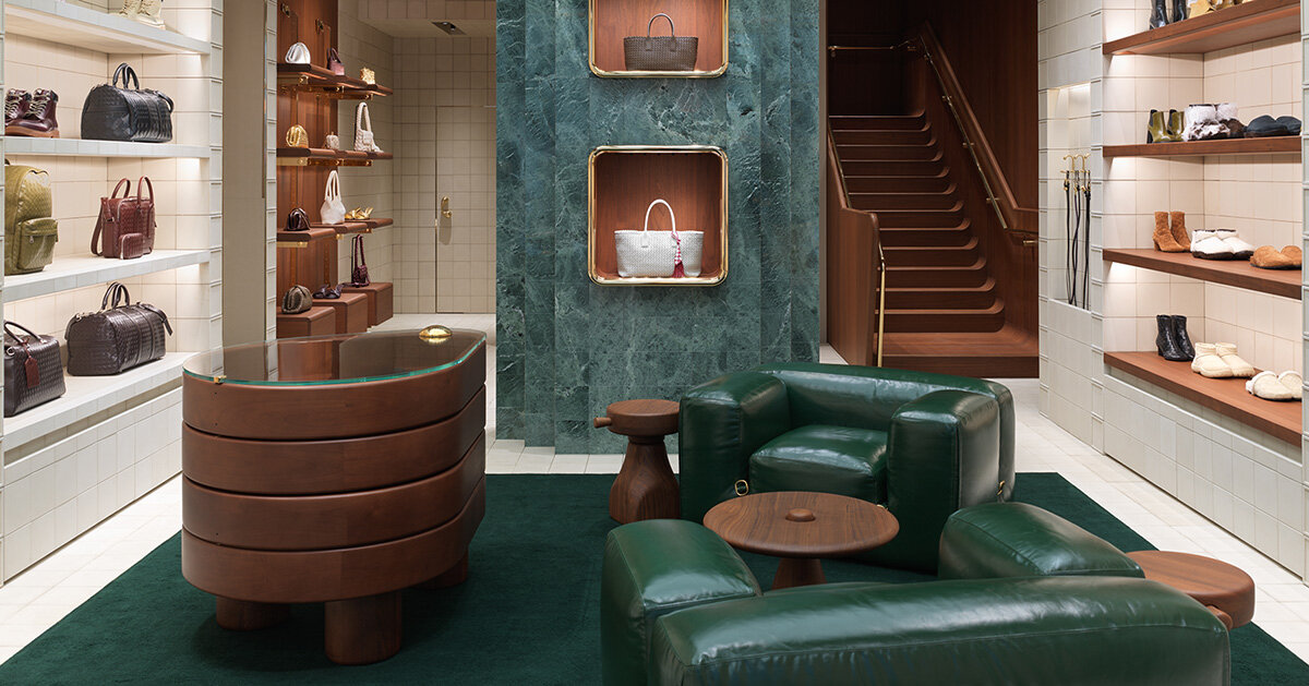 Bottega Veneta revela el buque insignia de Chicago en Verde Saint-Denis Marble and Walnut Wood