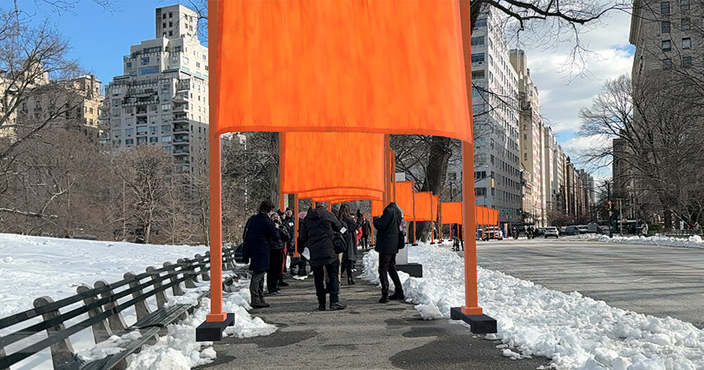 La puerta se concibió originalmente en la década de 1970, pero se realizó solo décadas después, que consta de 7,503 puertas de color azafrán que abarcan 23 millas del Central Park de Nueva York. El proyecto monumental reinventa el paisaje, invitando a los visitantes a interactuar con el medio ambiente de manera que nunca ha sido posible. Los paneles de tela vibrantes fluyen libremente desde las puertas, construyendo las rutas exclusivas del parque y creando una experiencia visual dinámica que cambia con el viento y la luz.