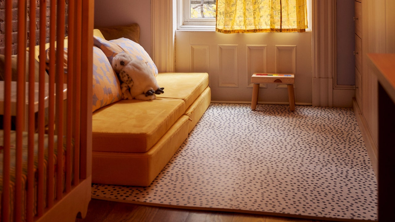 Las alfombras son uno de mis artículos favoritos para comprar cuando viajo: tengo múltiples alfombras manuales de Marruecos, que son alfombras estampadas que encontré en Bogotá, y una alfombra de roca Kili que amo tanto que tengo que se transporta a través de cinco acciones. Pero con un recién nacido, las prioridades de mi alfombra se mudaron rápidamente a Vivero para bebés. Una vez centrado en patrones, estilos e historias y Anti-pelling.