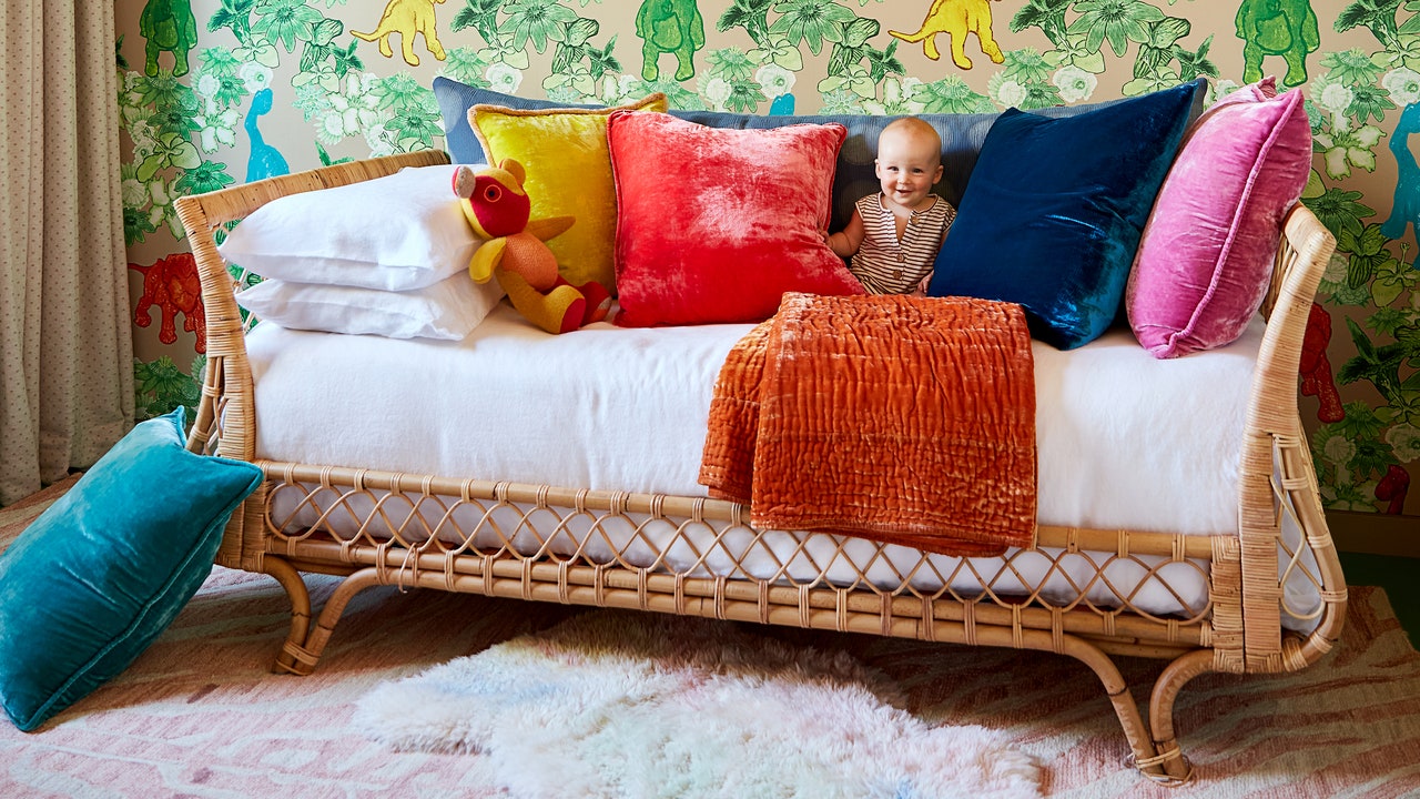 Al renovar y ventilar Residencia de Greenwich VillageBuzzy Design Deuo Duo Nate Berkus y Jeremiah Brent aseguraron que la guardería de su hija Poppy fuera tan encantadora como las otras habitaciones. Está envuelto en un fondo de pantalla Zak + Fox que reinventa la cuna blanca diseñada por el director de arte de equipos Gabriel Hendifar, Rh Baby & Child, quien se sembra en la alfombra Caitlin Wilson en el patrón.