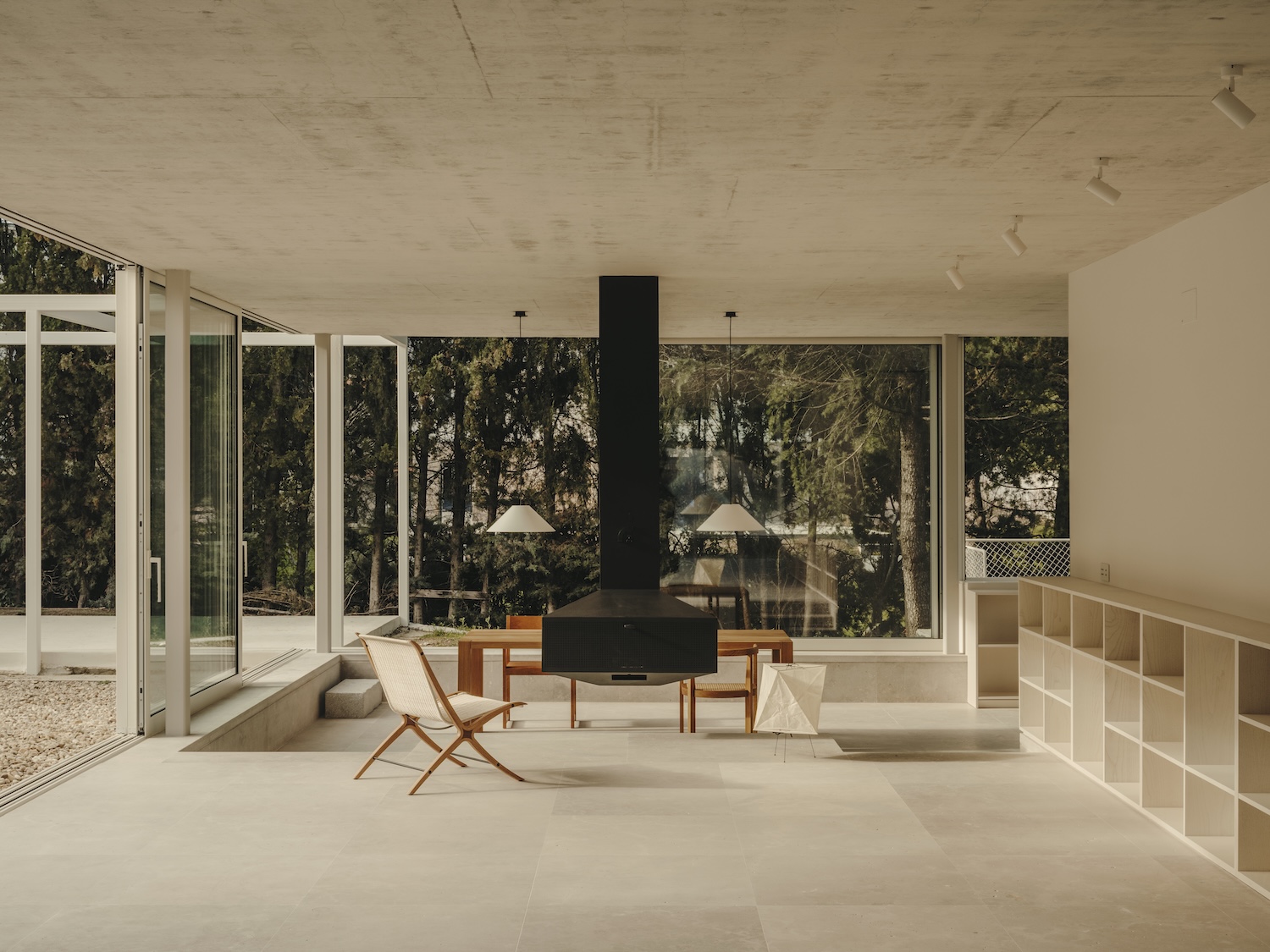 Casa Bonanza es una casa simple ubicada en Madrid, España, desde Aumento salarial. Los arquitectos describen la escalera de acero como «similar a una nave», tanto como un elemento funcional como como una lámpara de escultura cuya superficie de metal captura y refleja la luz hacia arriba en todo el espacio. La relación entre la casa y los muebles es particularmente evidente en el tratamiento de la planta baja como una espaciosa área de asientos.