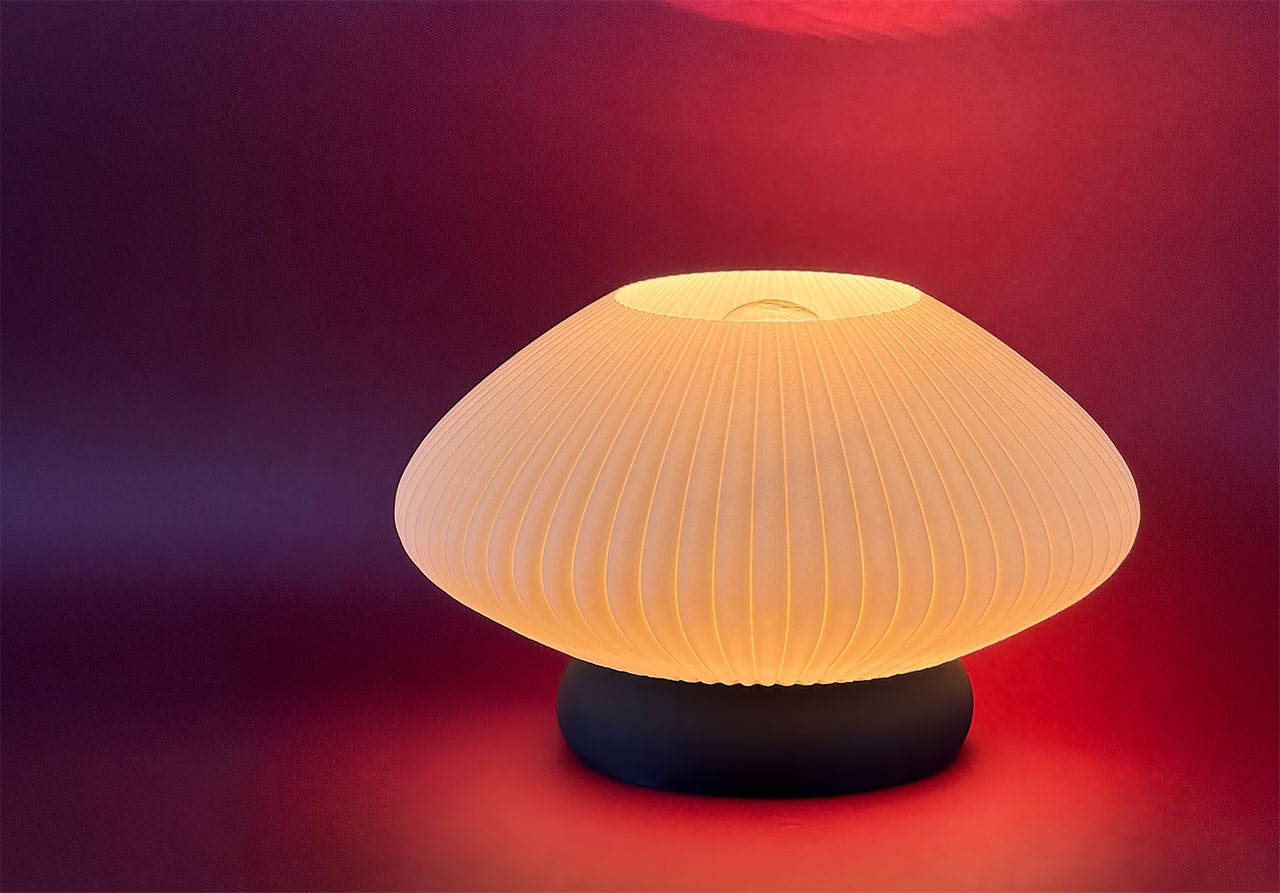 este Lámpara de lirio pasar a través continuar3D impreso con material biodegradable basado en plantas, versatilidad alrededor del objeto central: luz. Impresión de sombras sin material de soporte ahorra el 50% de la energía por enlace de impresión. Como proceso aditivo, la producción tiene la menor cantidad de residuos en comparación con la fabricación tradicional. Tan cómodo en una pared o techo como en un escritorio, la luz Lily está diseñada para la función definitiva y puede agregar diferentes bases y sombras indefinidamente.