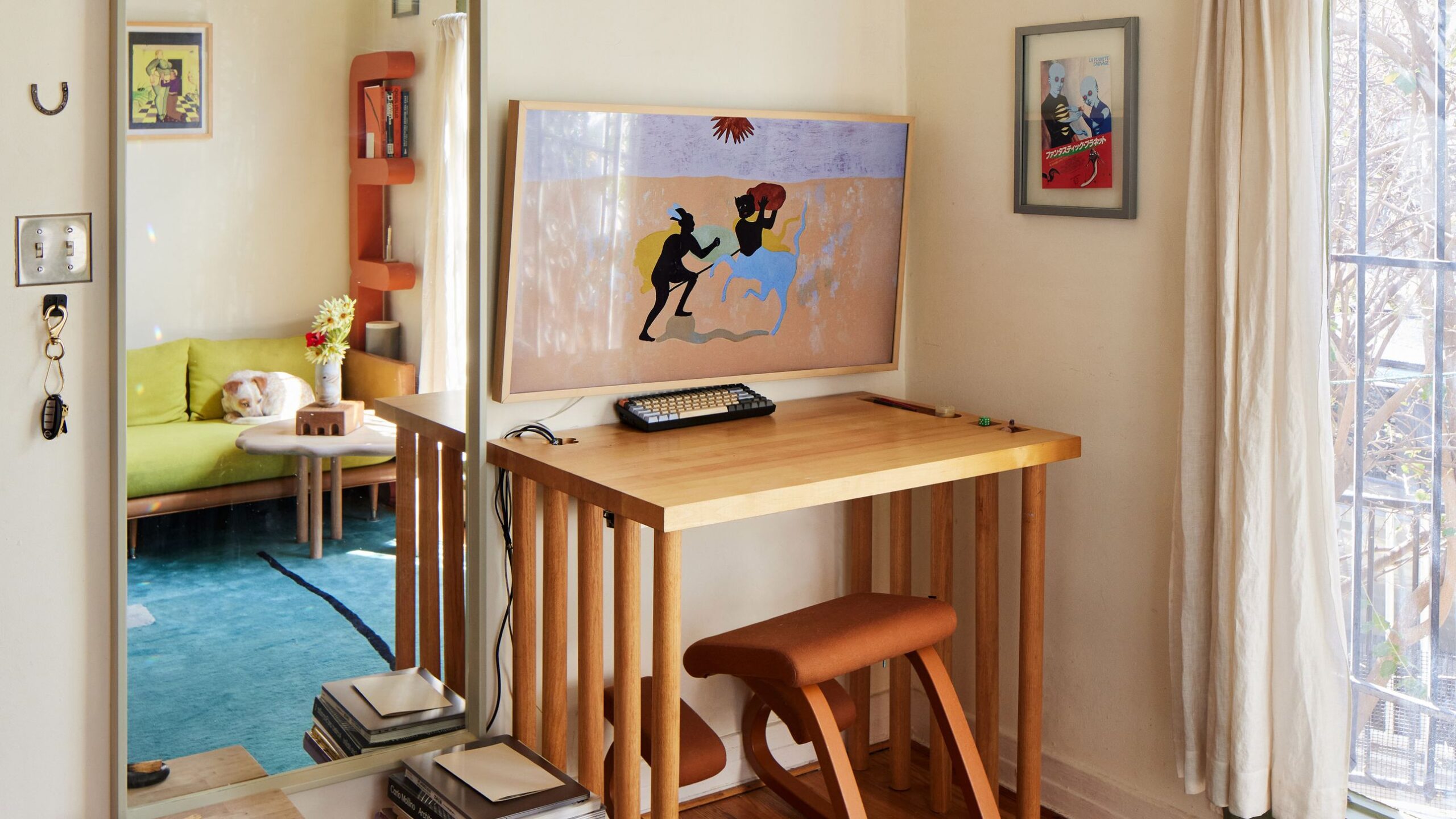 Para aquellos interesados ​​en la superficie de trabajo, puede duplicarse como un tocador o un aparador de sala de estar, mientras que el escritorio de Castlery Sloane puede hacer la tarea. Su exterior es elevado por un panel ranurado y un cajón de almacenamiento discreto, suficiente para hacer que una configuración no es deficiente.
