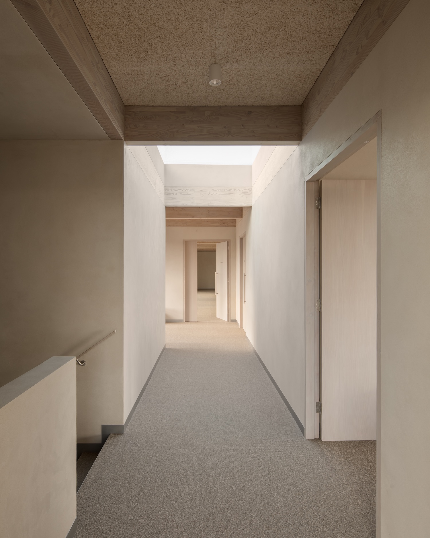 Lo que hace que New Wave House sea particularmente importante es su economía de material circular. Los paneles del techo originales se retiraron y reinstalaron cuidadosamente en la nueva extensión. La madera salvada de otros proyectos descubrió una nueva vida como vigas del piso y elementos estructurales. Incluso las representaciones de cal restantes de la colaboración minorista anterior de Aēsop se reutilizaron para las paredes interiores. Estos no son gestos simbólicos para la sostenibilidad, sino las decisiones de diseño fundamentales que dan forma a la estética y las resoluciones técnicas del proyecto.