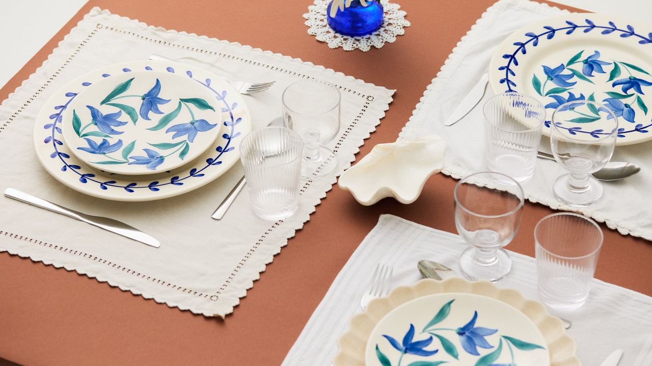 En 2018, el diseñador francés con sede en Lisboa Sam Baron colaboró con Yatzer en la colección de cubiertos monocromáticos para el 25 aniversario de Mateus. Fue un verdadero éxito, y provocó una colaboración a largo plazo con proveedores de cerámicas de diseño portugués de diseño portugués sueco, incluida la serie Flowers del año pasado. Este mes, Baron estaba en su entorno de segundo año, combinado con una cena en flor y platos laterales, presentado en turquesa fresca y azul de mezclilla, y mezclado con tulipanes y lirios de agua del resto de la serie. Guirnalda dibujada a mano, serpentea románticamente sobre fondo de vidrio blanco con Blossom