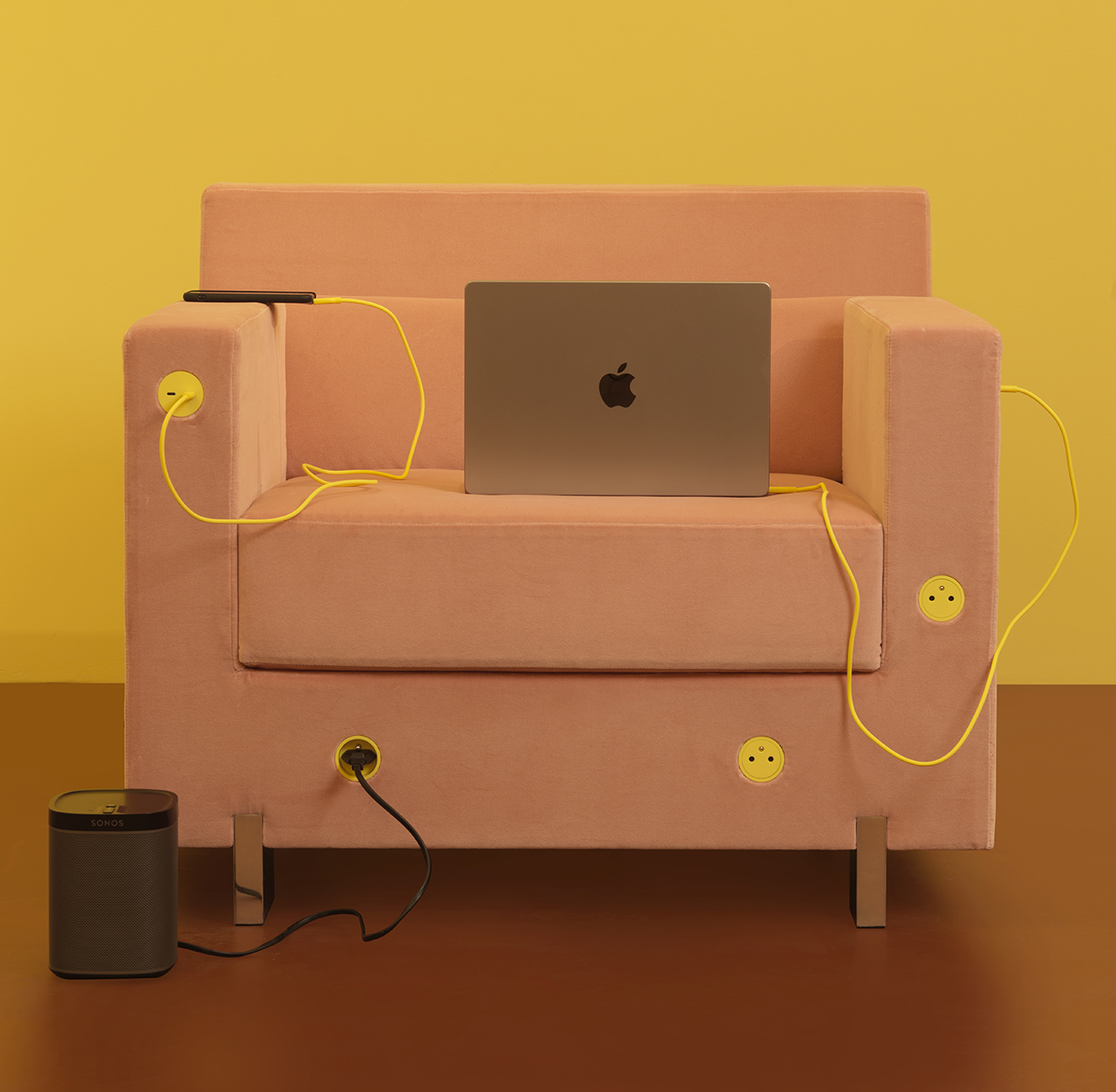 «Las caras sonrientes se tratan de celebrar los pequeños detalles que traen alegría a nuestra vida cotidiana», dijo el diseñador. «Al reinventar la toma de energía como un elemento de diseño, invitamos a las personas a ver la belleza de la funcionalidad y la familiaridad». Explotada por la faz de la silla, la salida proporciona una posición tradicional de funcionalidad y humor, con la opción de permitir que el enchufe crezca en toda la forma, sin restricciones e innegables amarillos.