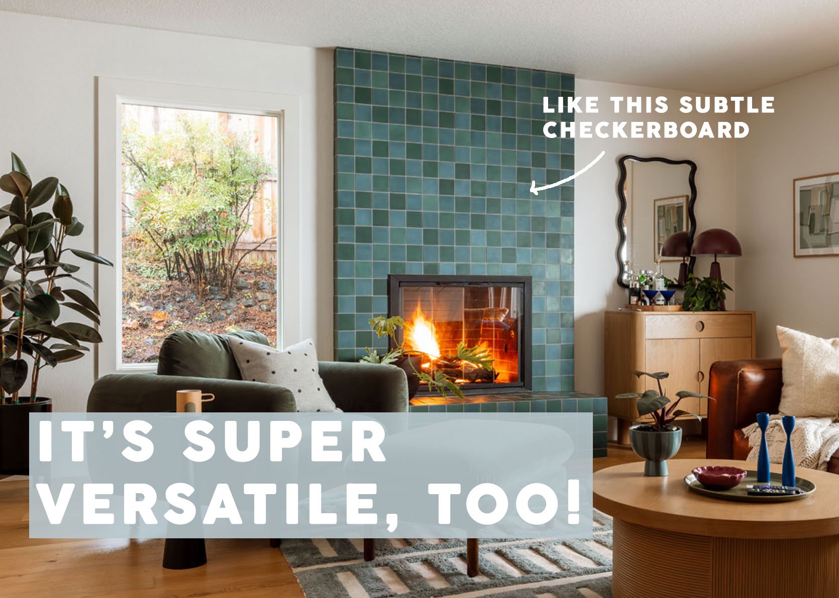 Finalmente hay otro tablero, pero me gusta la yuxtaposición más moderna Cheque gris y blanco Con caja de chimenea antigua. Esta es una excelente manera de crear tensión (Cada habitación necesita un poco de tensióndespués de todo).