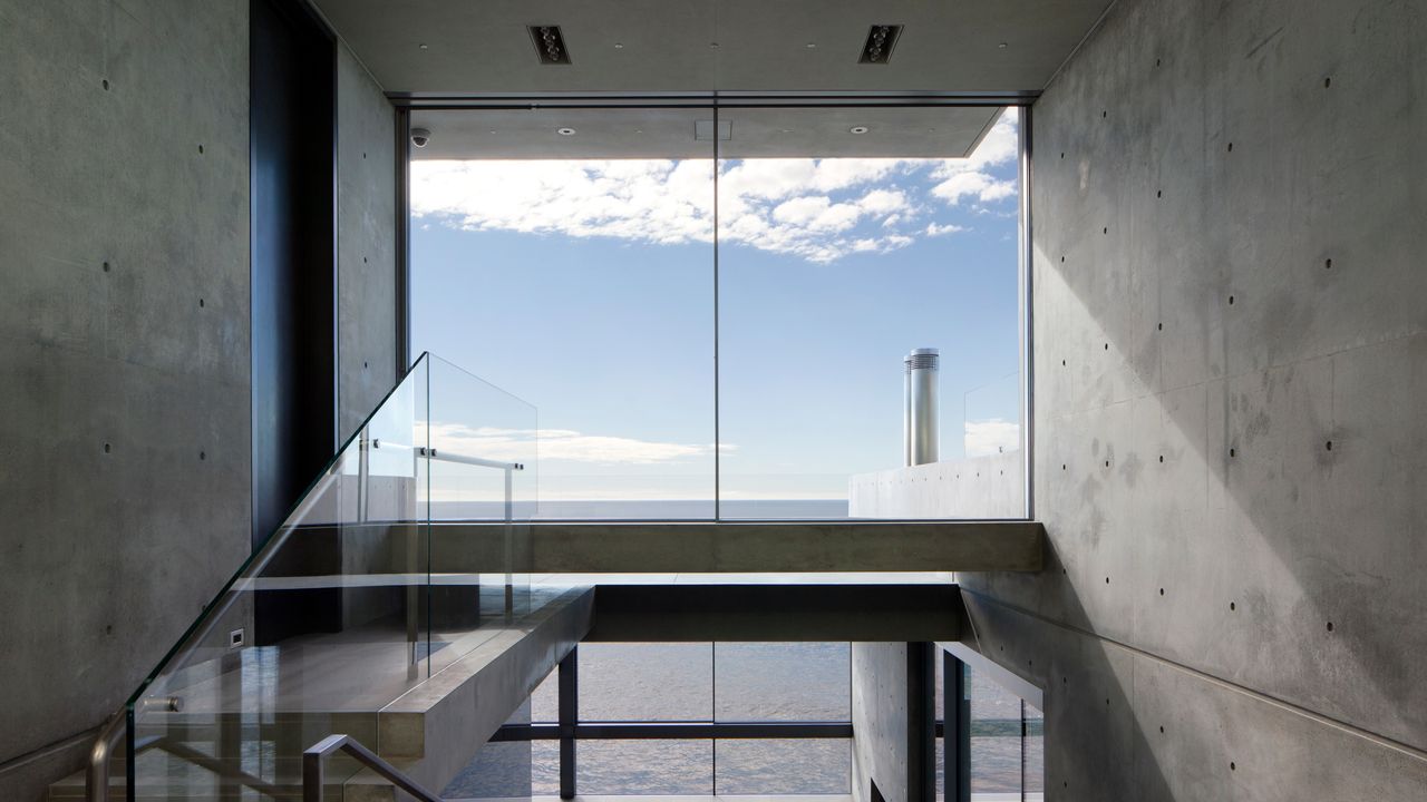 Premio Pritzker ganador de almidón japonés Tadu ando Hospedarse Behemoth Seaside Residence En 2013. La casa de tres pisos se convirtió en el hormigón característico de Ando y requiere 1200 toneladas de material junto con 200 toneladas de acero y 12 torres fijas a 60 pies de profundidad. Esta casa de cuatro dormitorios ofrece 500 pies cuadrados de espacio y escaleras con acceso directo a la playa.
