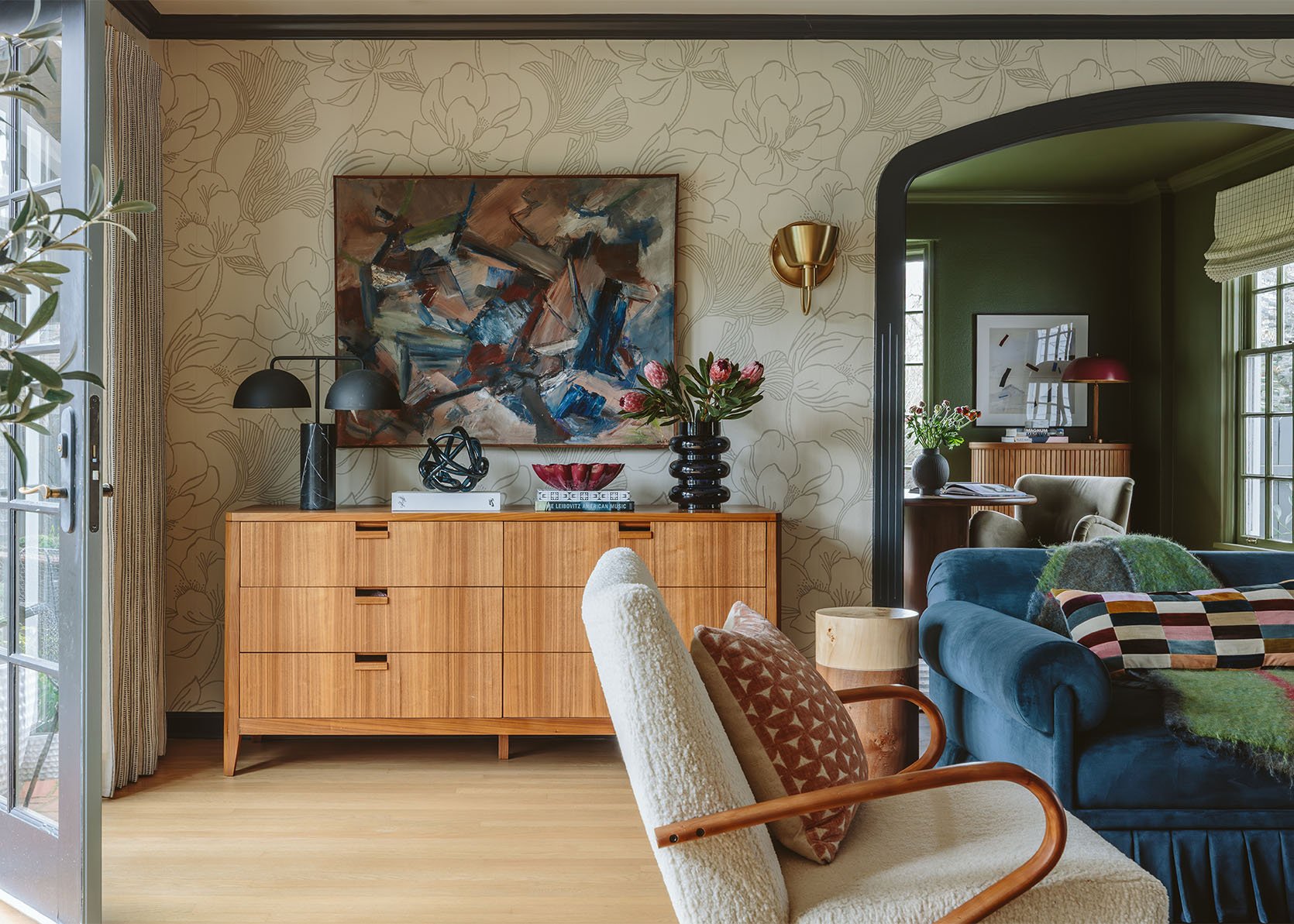 Es una historia real, una historia real en el color y la cohesión en la yuxtaposición de los estilos, porque cuando revelamos la casa (cuatro habitaciones completadas hasta ahora), verá cómo fluyen, pero cada habitación tiene una atmósfera única. Todos hablan entre ellos de una manera que se siente tan vibey (y, por supuesto, se están asomando en otras habitaciones aquí).