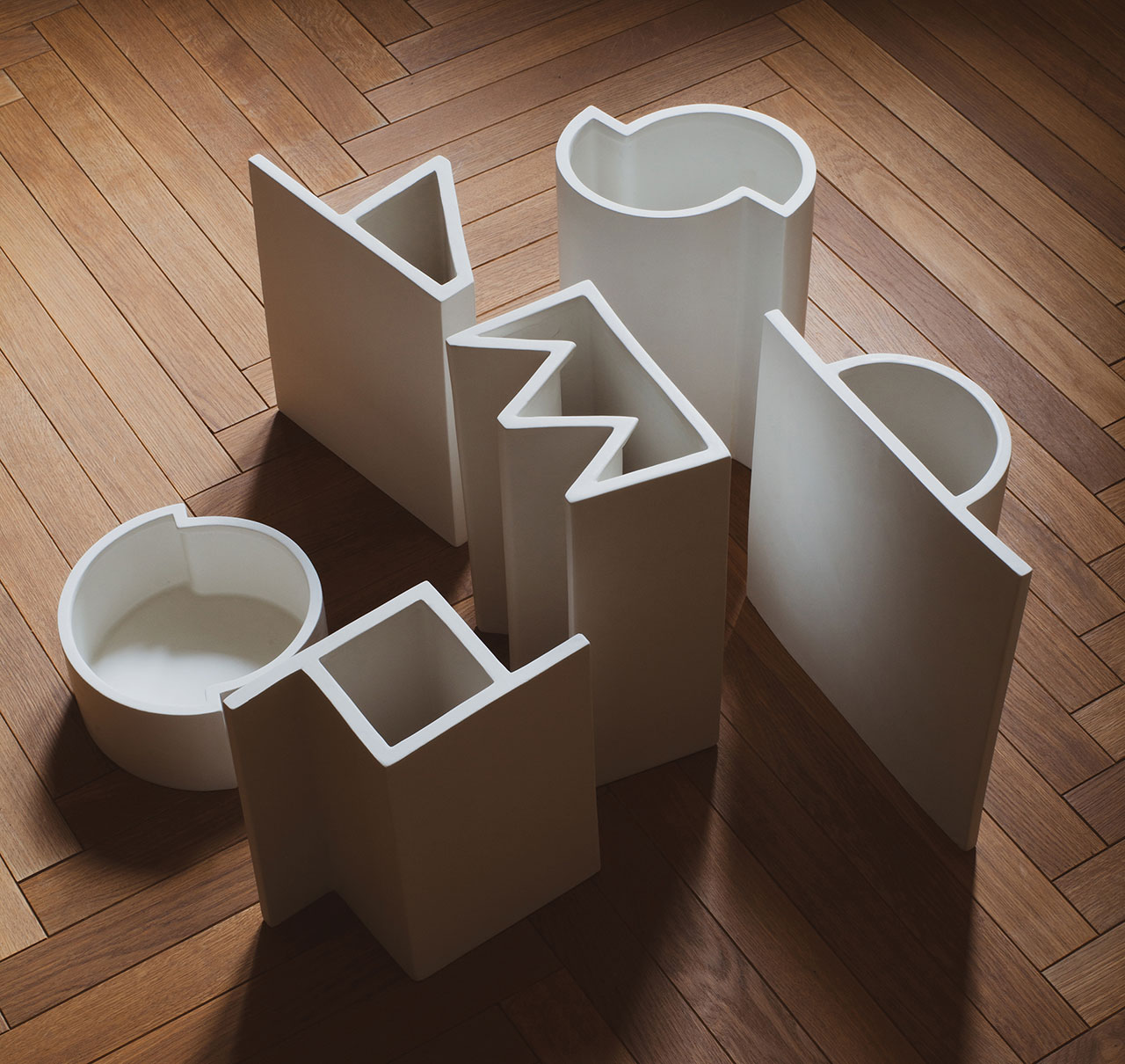 este rey El jarrón es un ejemplo interesante de una forma abstracta hecha a mano que forma los tres patrones puntiagudos de la corona. Una forma extruida donde los diferentes planos del barco capturan la luz de una manera fantástica, que muestra tonos individuales. Por supuesto, los colores tradicionales de blanco mate y negro mate son cruciales para los puristas, pero para aquellos que no tienen miedo a las ramas, la versión rosa está disponible.