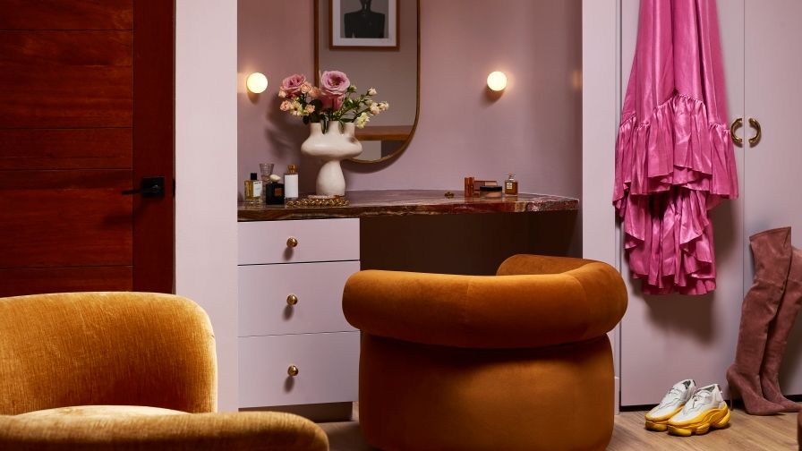 Si aplicar su régimen de belleza es más como un autocuidado, vaya de Lana Condor o Harper Sorum Y dedícate a todo el espacio para tu ritual hidratante. En esta categoría, encontramos opciones que aún pueden ayudarlo a maximizar el sector inmobiliario del piso, como levantar una mesa, que también funciona como una mesa, y una opción Wayfair a un precio bien que parece una mesita de noche normal, pero que en realidad puede convertirse en una mesa y silla de espejo.