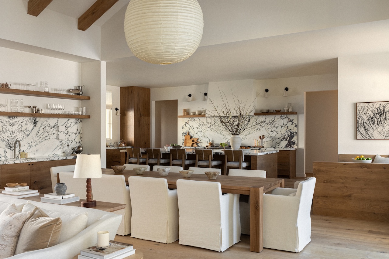 El desafío de desarrollar la intimidad en la amplitud se resuelve a través de la estratificación del material, ubicaciones estratégicas que constituyen elementos de textura, como los mosaicos de piedra caliza volcados, para liquidar la superficie para crear una profundidad percibida, lo que permite que el gran espacio se sienta a escala adecuadamente. Este enfoque continúa en todo el hogar, donde la integración de los acabados naturales (madera reciclada, níquel, pizarra y arcilla romana) crea un lenguaje material que es apasionado y armonioso.