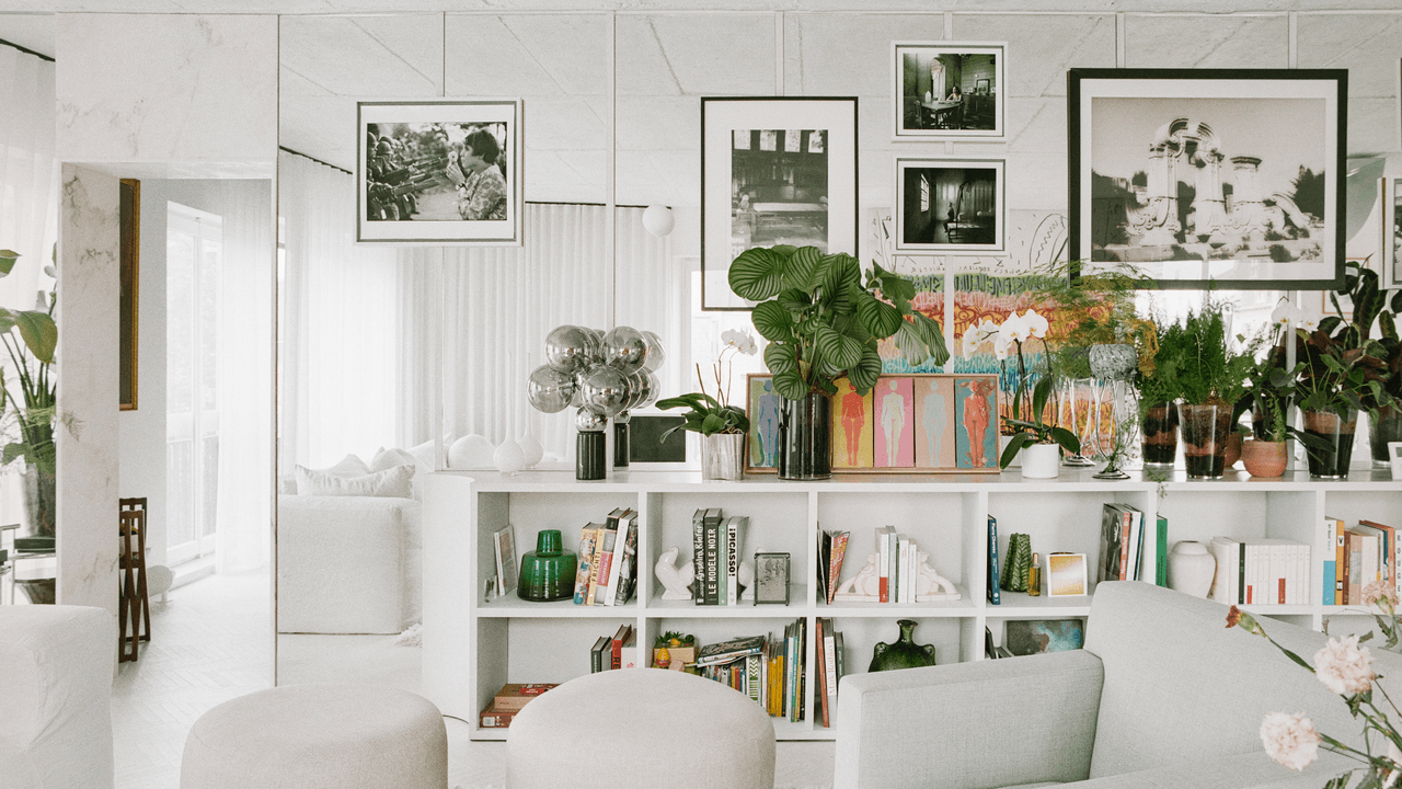 Artículos, decoraciones y muebles con artículos de los años sesenta y setenta y obras más modernas, incluido el eclecticismo de Diama David, refleja el eclecticismo del edificio, los candelabros de Pierre Chareau en la cocina y los apliques atemporales de la década de 1950. La colección de arte del propietario incluye una pintura de André Saraiva en el restaurante, otra de Aki Kuroda y un jarrón de Gaetano Pesce. Louis XIV Mirror interactúa con una bañera suave en un baño blanco brillante. «Estos pequeños efectos de contraste crean una forma abstracta que crea una sensación de atemporalidad, a veces casi desactualizada. El apartamento puede ser de la década de 1970, o tal vez de la década de 2040. Me gusta explorar esta ambigüedad».