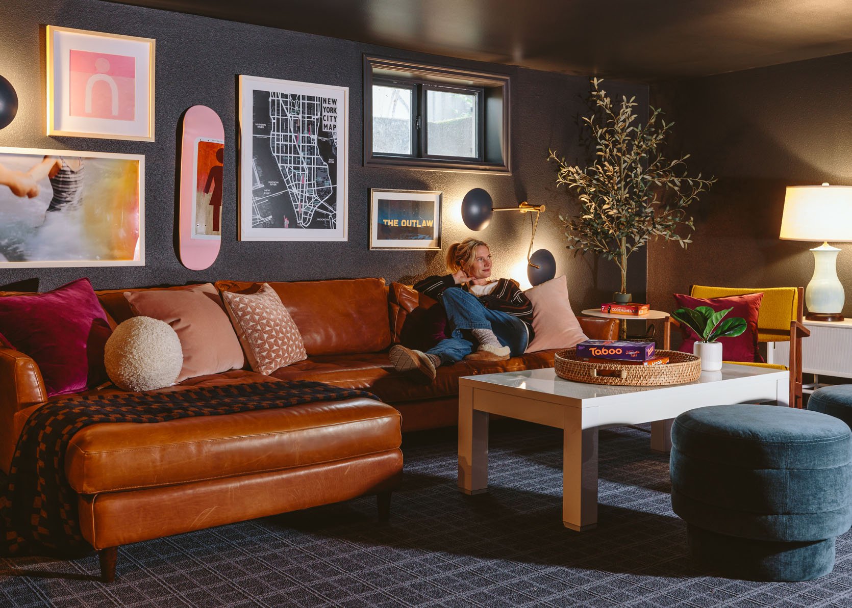 Cuando me jubile, haré entretenimiento una vez por semana (con algunos gastos adicionales): ¡emerge una casa, editor, curador y repitir y luego «Adiós»! Una persona de hadas (??). Esto es realmente satisfactorio. Nic y Curtis estaban confundidos sobre cómo colgar todo el arte en su nuevo sótano oscuro (para sus niñas casi adolescentes), y les aseguro que podría hacerlo mientras dormía. Así que Gretchen y yo fuimos por un día, tomamos balance, ordenamos nuevos apliques, pufs, almohadas y una planta falsa, y volvimos en un día.