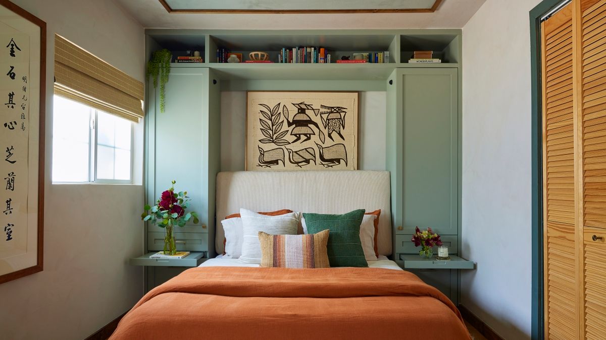 «Me gusta buscar camas Murphy que se parezcan a los gabinetes», dijo Sarah Storm Por estilo de tormenta. «Funcionalmente, los gabinetes de ambos lados también permiten mesas de noche al lecho y se almacenan al esconderlas».
