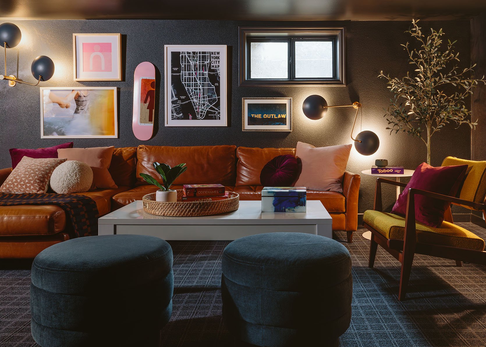 Abra los créditos de imagen: Fotografía Kaitlin Green | De: Cambio de imagen para mis amigos al día: un sótano adolescente con coloridas paredes de la galería usando lo que ya tienen