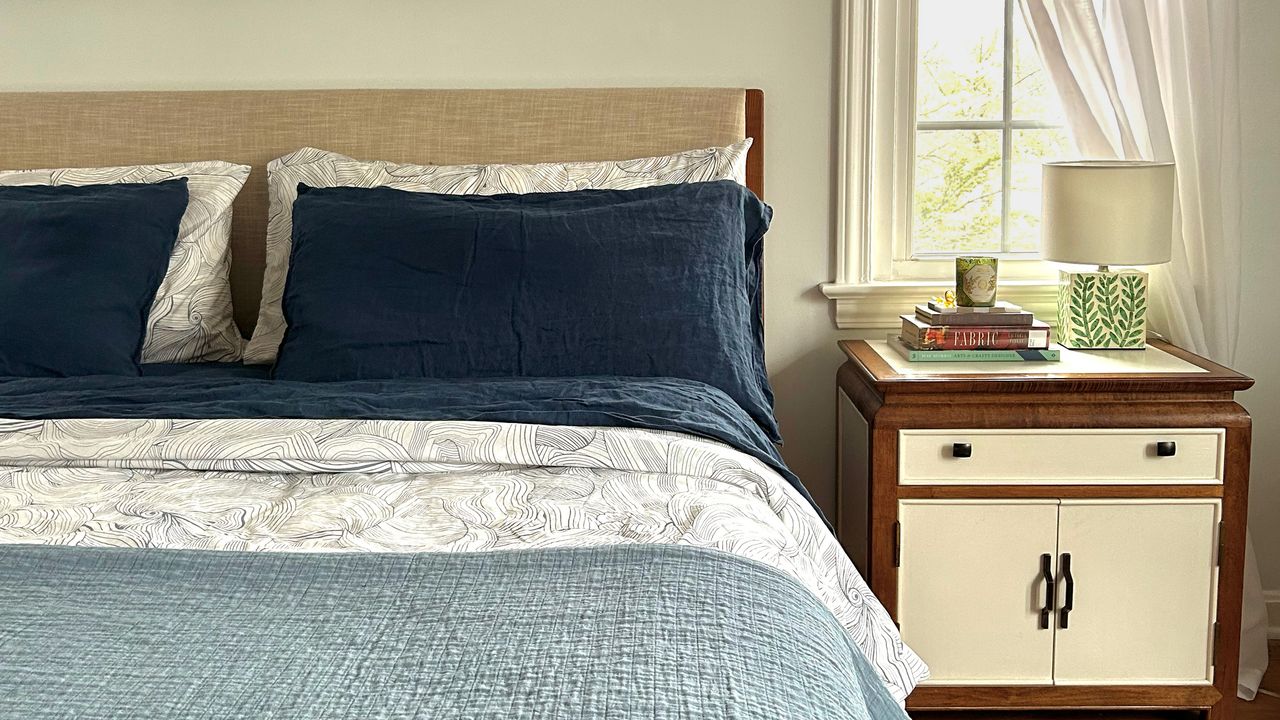 Otro beneficio a considerar es que tanto la firma como las hojas de montaje de lino tienen bolsillos profundos (¡17 pulgadas!), Por lo que su ropa de cama se ajusta a la perfección Juego de felpaincluso si tiene uno Sombrero de copa. También estaba un poco obsesionada con el color, que se lee como una nube de tormenta malhumorada, pero los ojos eran fáciles. Se combina con blanco nítido y gris suave.