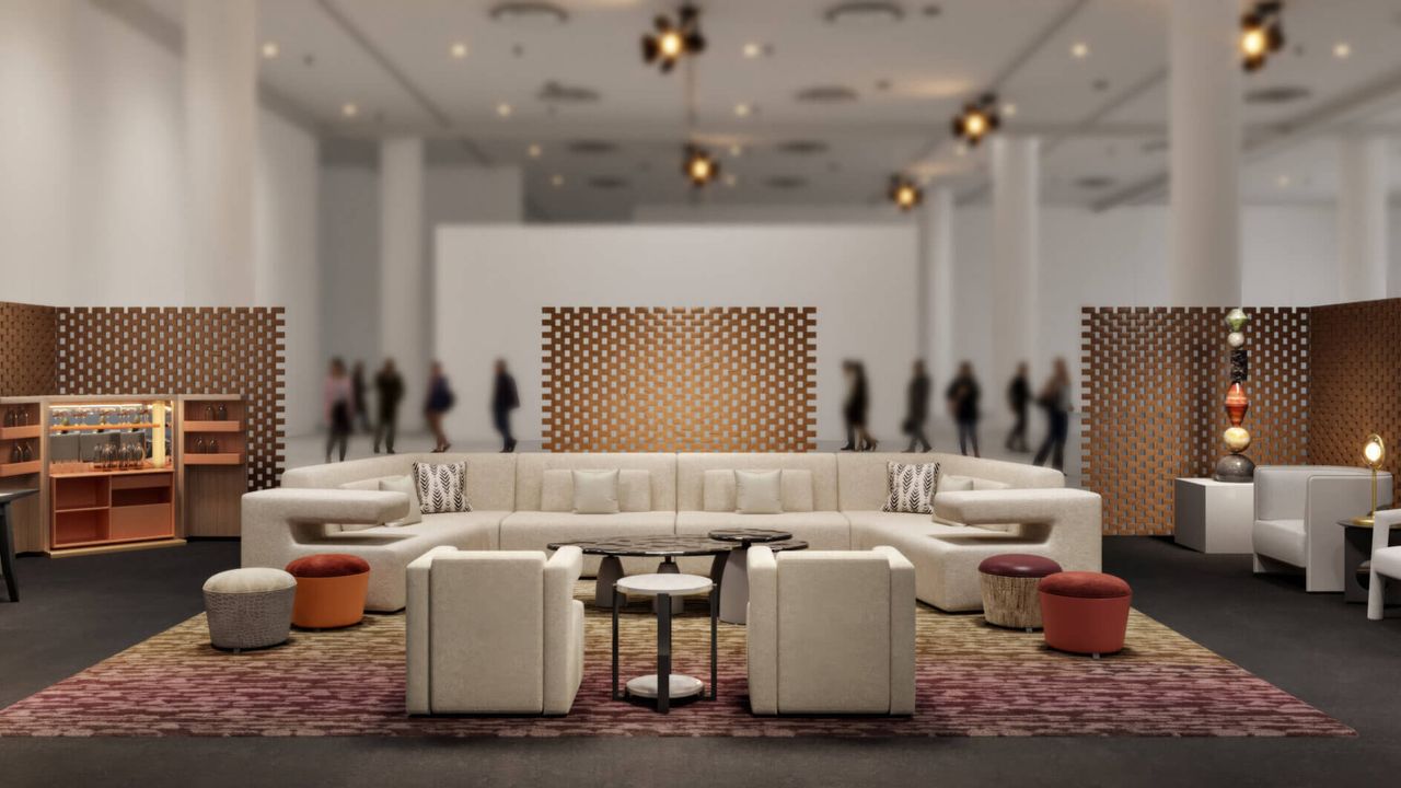 La construcción general es similar al vestíbulo de un hotel de cinco estrellas, y el espacio será un retiro relajante y tentador que lo compara con el resto de la feria. Completamente encerrado, accesible a través de grandes arcos, el método facilitará mejor el devanado a través de los gabinetes de exhibición entre 20 expositores cuidadosamente seleccionados y visitantes comerciales adquiridos durante el evento de tres días.