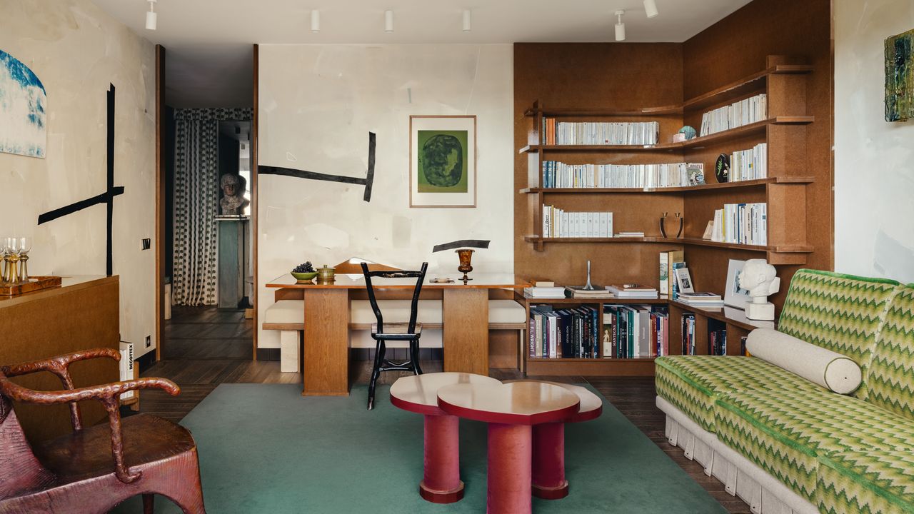 La fascinación de la pareja con los detalles hechos a mano prueba las habilidades de su artesano. «Al principio, estaban un poco preocupados, pero al final estaban felices de tener la oportunidad de mostrar su experiencia». Sin embargo, su amor por una tecnología de larga data no renunció a su interés en descubrir materiales modernos que les proporcionaron espacios de arquitecto gratuitos que se fijaron firmemente en el pasado. Sea testigo del baño, mezclando hábilmente mármol cuidadosamente personalizado con papel de polvo de mármol suave y crea un espacio sin ventanas que proporciona la gloria de un templo antiguo. O las habitaciones de las parejas, presentando cabeceras de aluminio y cromo en cabeceras personalizadas apenas perturba el espacio en la sorprendente paz del patrón. Las pinceladas geométricas de los murales de Daventure, expuestos en las paredes de la sala de estar, equilibran a los exuberantes habitantes personalizados de la sala, su ingenioso trío de mesas en forma de corazón a medida, el lujoso brillante de sus cajas de madera diseñadas y un lujo ubicuo que va directamente al suelo. «Cuando tenemos a alguien que viene, casi siempre se sientan en el suelo», dijo Orsini. «Eso es lo que siempre queremos crear: espacio hermoso, cómodo y divertido».