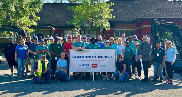 este Asociación Americana de Arrendamiento (ARA) Conceptos básicos y Toro La Fundación donó equipos y voluntarios el 30 de abril para limpiar y transformar siete acres de tierra en el Centro de Crisis Juvenil (YCC) en Jacksonville, Florida. YCC ofrece una variedad de servicios para niños, adolescentes, jóvenes, adultos, padres y familias. Desde 1974, su énfasis en la atención ha estado en las personas que han sufrido abuso, como la falta de vivienda, para dañarse entre sí con sus familias.