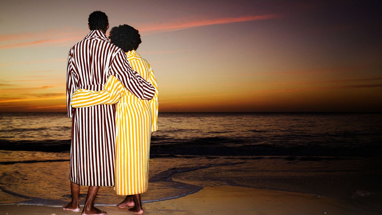La colección de 23 piezas presenta túnicas, toallas, esteras de piscina e incluso un ventilador de sol retro que encarna el diseño exclusivo del hotel y el espíritu encantador. «Llamamos a la gloriosa era de los años 70 una era gloriosa del Caribe, desde entonces, el edificio del edificio en sí lo ha prestado a esa era. Queremos perfeccionarlo», dijo Khalil. «La fotografía de Slim Aarons y la imagen de Grace Jones han sido referencias visuales consistentes».
