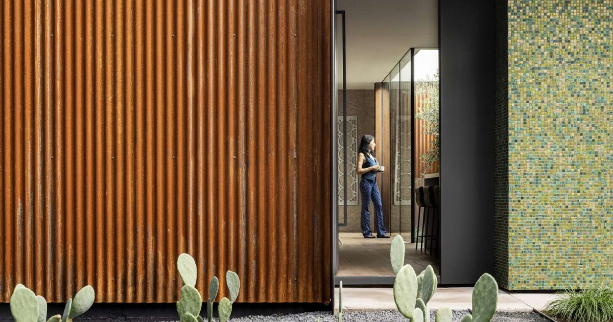 Desde las calles, o más precisamente, las casas invisibles se parecen más a instalaciones de arte que viviendas. Su apariencia de acero desgastada corrugada es sorprendente: original, mezclado con óxido y sin ventanas. Pero es más que una opción de diseño. Esta es una política de privacidad.