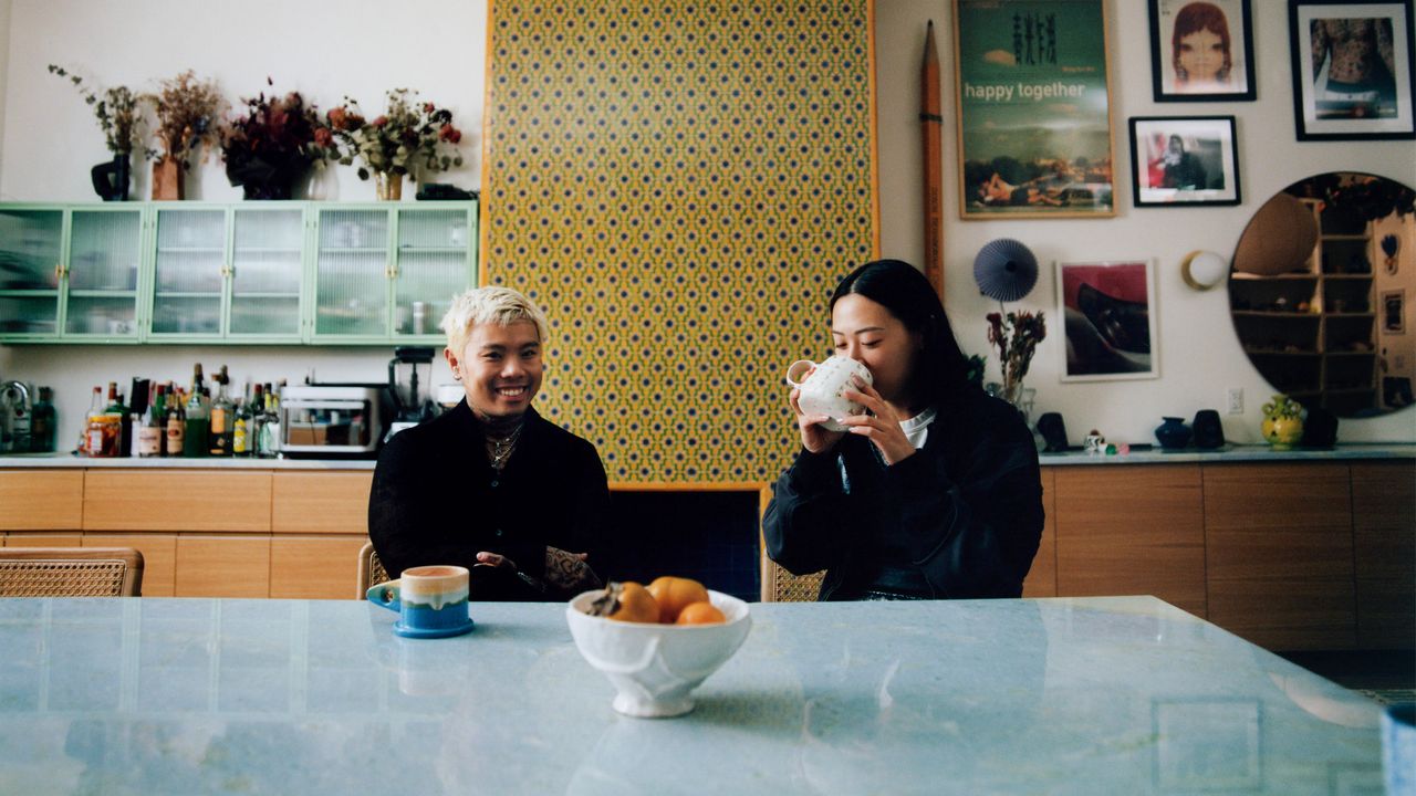 A pesar de que la vida nocturna los reúne a todos, Goh y Li son muy claros desde el principio: esta no es una casa después de la fiesta. «Cuando trabajas en un lugar fuerte y hay muchas personas a tu alrededor, solo quieres estar callado y tranquilo en casa», dijo Goh. Eso no quiere decir que no trajeran el diseño de la fiesta. Para dividir el espacio de manera uniforme, Goh afirma tener su propia cocina con el piso del jardín donde Lee vive en el piso superior. The Middle Floor es un espacio compartido con una cocina completa y una pared completa de estanterías para que muestren su curiosidad y colecciones, como el lápiz Ticonderoga de cinco pies de la época de los años 70, de la tienda de la ciudad de Nueva York ahora anunciada. En el medio es donde entretienen a sus amigos para cenas discretas. También es su casa de derroche más grande: baldosas marroquí hechas a mano alrededor de la chimenea de la cocina. «Es algo clásico, algo de español, pero también muy singular y ruidoso», dijo Goh. «Es un buen equilibrio entre nuestra sensibilidad de diseño».