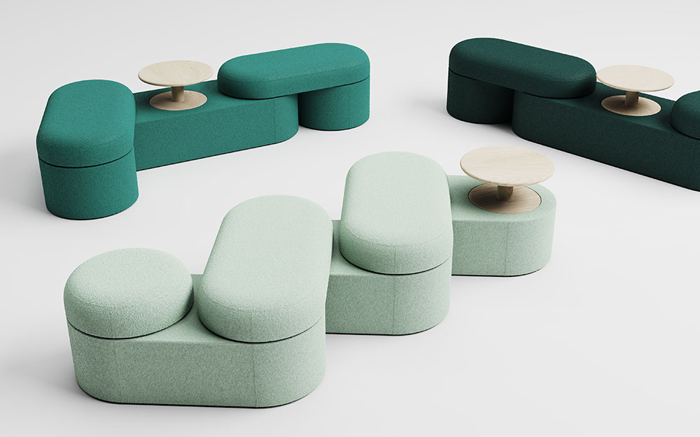 La idea se sentó en el estante cuando el equipo se centró en otros proyectos, pero cuando los clientes señalaron la privacidad y la salud eran temas clave, Champaign decidió volver a visitar a Tate. Vio varios lugares públicos, especialmente inspirados en High Line. Este parque de Manhattan está construido en una línea de ferrocarril elevada con más de 230 bancos y áreas de asiento. Todos tienen mucho espacio y dos personas generalmente se sentarán en extremos opuestos, lo que proporciona una sensación de conexión mientras mantiene una cierta comodidad personal. Tate proporciona la misma forma y funcionalidad para entornos interiores, desde la oficina hasta el espacio hotelero.