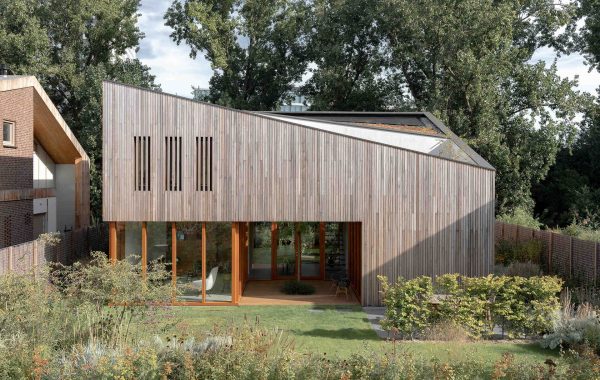 Diseñador con sede en Vancouver Omer Arbel No da nombres de su proyecto; Prefiere números de acuerdo con su orden de finalización. Esto significa que el 2.4 es la silla de resina a rayas que creó en 2003, mientras que la 84 es una lámpara de espuma de vidrio bordeada con un forro de malla de cobre, desarrollado en 2016. Un acabado bastante nuevo es 91, una casa de vacaciones familiares escondida en el bosque en la isla cerca de la costa de la ciudad de Columbia en el Reino Unido. El esposo y la esposa se mudaron el año pasado. Cubierto de bloques de cedro triturados de gama pesada, esmerilado a un acabado suave y casi rocoso, la casa desaparece en el paisaje de los árboles. Por la noche, la familia brilla como linternas en ramas. Pero el verdadero recorrido es cómo Abel usa el sitio. Aunque la tierra tiene una costa de 500 pies, decidió no abrazar la casa a lo largo de la costa, sino que puso su huella perpendicular a la costa, abarcando las zanjas. Los visitantes entran en un largo corredor con una habitación pequeña e interesante en un lado y luego entran en un hermoso espacio de vida antes de ver el mar.