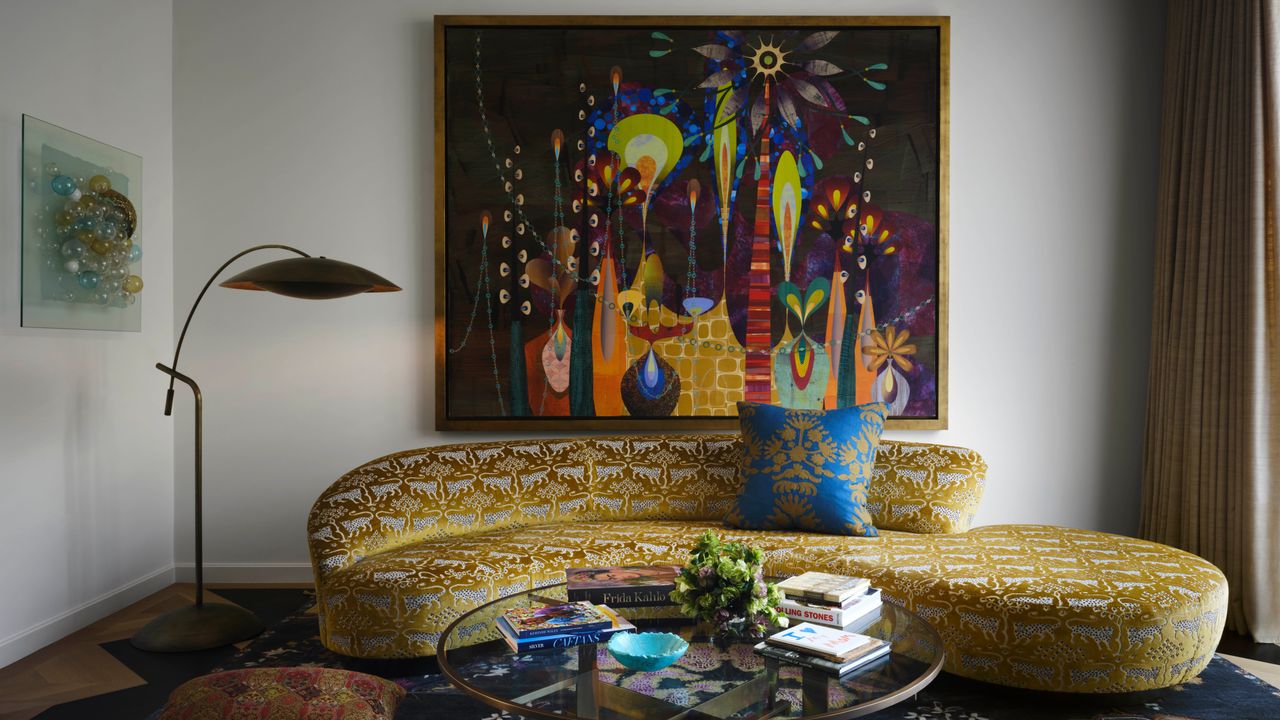 La preferencia de Janice por el arte único es grande en toda la familia, aunque su definición de arte no se limita a la pintura o la escultura, incluidas las reliquias, los objetos descubiertos y las oficinas en el piso de arriba, como un conjunto de placas chinas antiguas Lynn orfebre. Ella usa decoraciones y más reliquias para hacer animaciones de la sala de estar con las alegrías pasadas de los clientes menos menos F. Schumacher & Co. Woodland Leopard Velvetmantenga su mesa de comedor y su carrito de bar y se enorgullece de los muebles y los tchotchkes que se han recolectado a lo largo de los años. En el espacio en blanco, miró la historia y eligió las sillas Salinin del restaurante y la iluminación vintage como opuesta a la obra de arte de recuerdo Keli.
