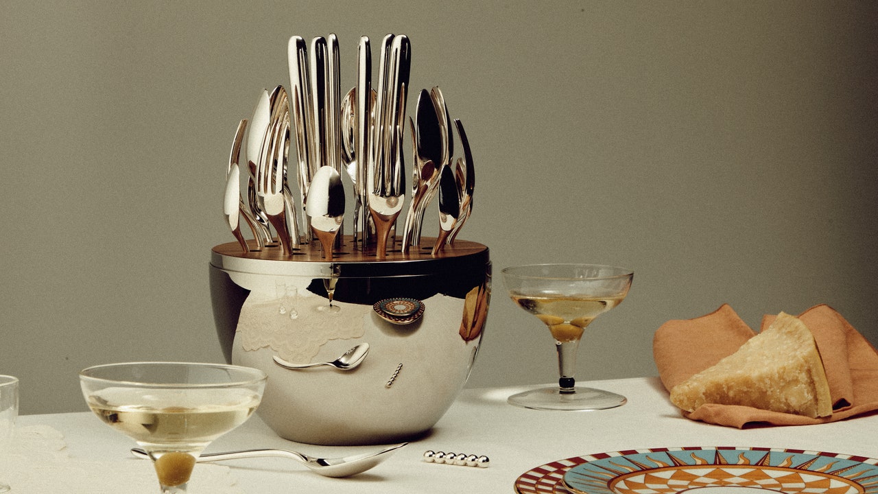Entonces, ¿dónde comienzas a construir tu propia colección Christofle? Si no está listo para invertir en una vajilla completa, diseñador y Fink Se recomienda comenzar con una extraña pieza decorativa: «Tal vez sea un barril de champán, bandeja o marco de imágenes para preservar fotos memorables». O, a medida que pasa el tiempo, puede recoger lentamente: una cucharadita aquí, un cuchillo.