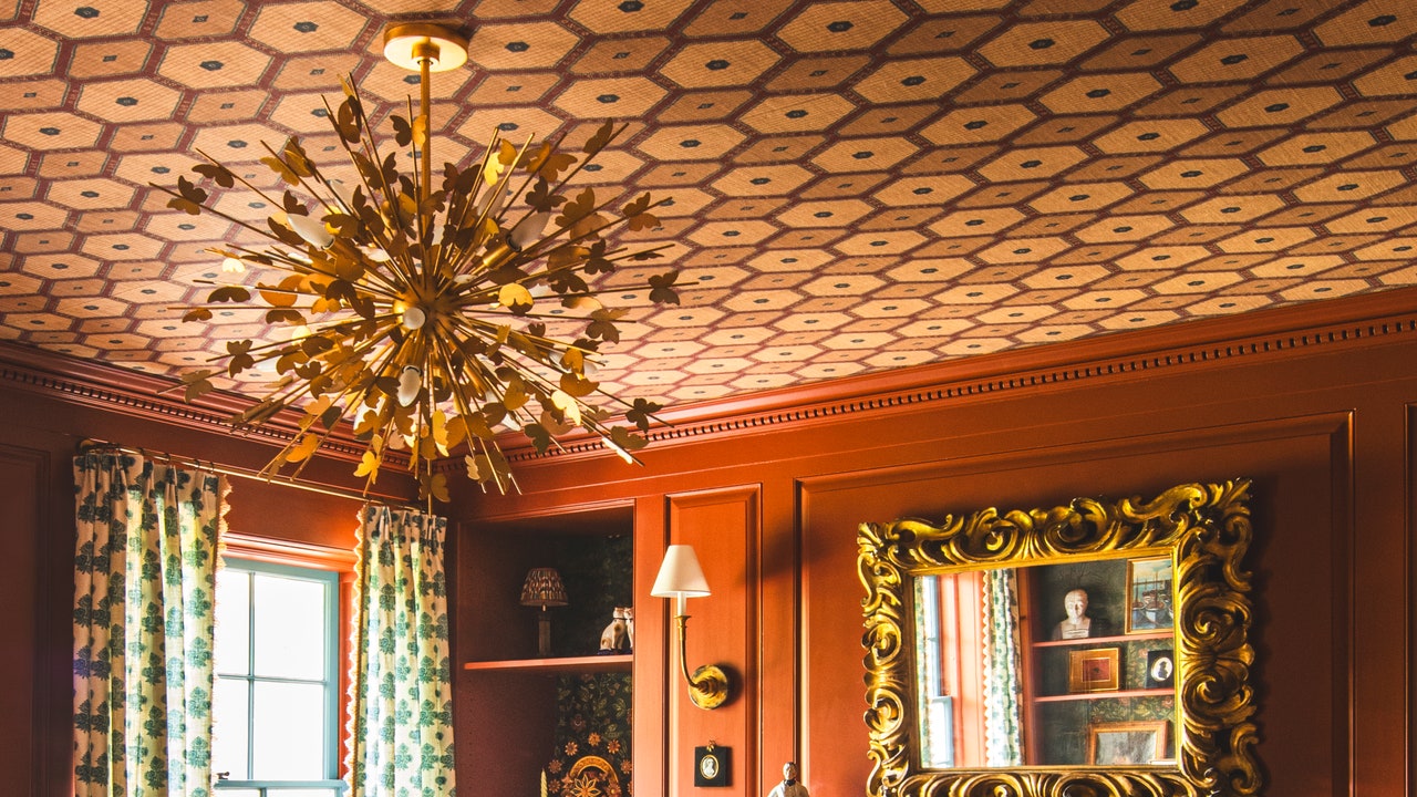 Ex productor de cine, diseñador en Los Ángeles Julia Chasman Acercándose naturalmente a la biblioteca Pasadena Diseño de pantalla en casa Al igual que un set de película de fantasía. La chimenea original en el interior lleva el espacio, aunque está dispersa con mosaicos de Delft de Petra Palumbo. Mientras tanto, el misterioso fondo de la criatura del fondo de pantalla de Zak + Fox’s Night es una estantería de madera pintada con un color de cola oscura en Dunn-Edwards. La lámpara de lámpara Farfalle de Visual Comfort estalla con mariposas en lo alto, mientras que el patrón Tuareg de Peter Dunham inyecta energía instantánea en el espacio como tratamiento con techo.