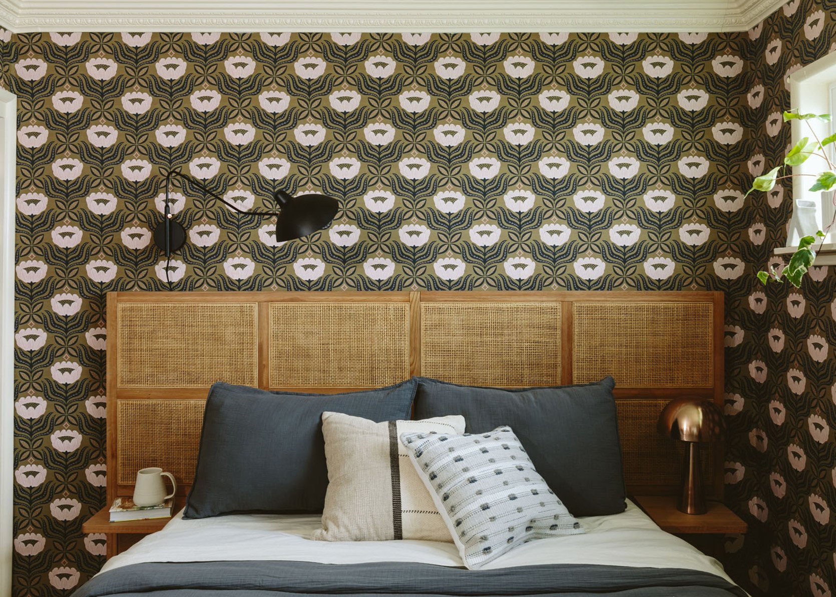 Open Créditos de imagen: Fotos Kaitlin Green | De: La primera moto de Gretchen revela: una pequeña habitación llena de la obra perfecta de artículos (telas en la pared).
