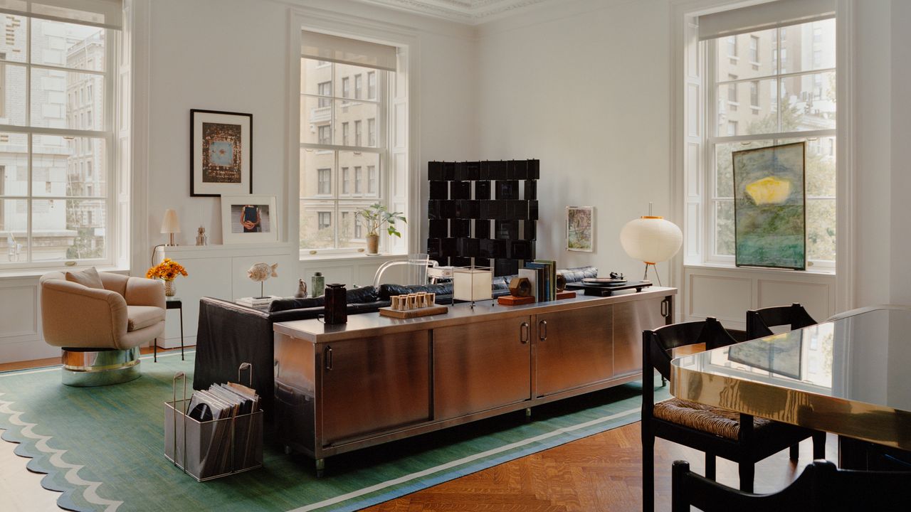 Eric Wisman, cofundador de Botox Clinic llenoDurante Covid, se mudó a su loft de East Village y decidió mantener la escalera de acero inoxidable instalada por el antiguo inquilino. «Creo que está en marcado contraste con la mayoría de mis muebles de madera», dijo. «Todo el espacio tiene una sensación de espacio externo desde los años 80, con escaleras y luces de neón instaladas alrededor de la cama». Desde entonces, Wisman se mudó sobre el pasillo y se mudó a una unidad de 950 pies cuadrados, un apartamento que vive y escribe su novela, a excepción del famoso soltero y fiesta Bret Easton Ellis, que vive y escribe su novela Enfermedad mental americana. Ellis Discurso Su apreciación de los detalles estériles (o la falta de detalles estériles) en el espacio se atribuye a la creación de su personaje principal.