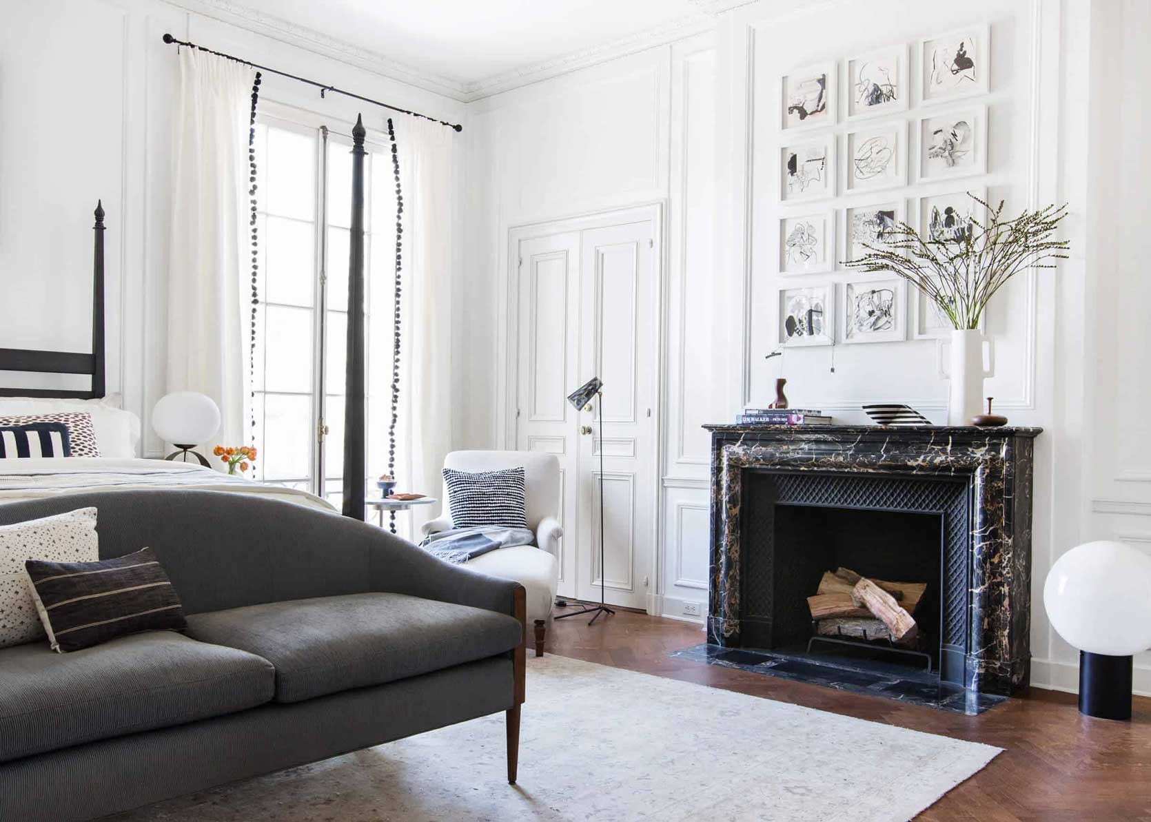 Tirarlo de vuelta Sotheby’s Paris Suite Para aquellos que han estado presentes durante más de una década. Hay muchos contrastes en esta cámara en blanco y negro, lo que ciertamente ayudará, pero los silenciosos momentos estampados lo traen a casa, incluidos pisos en espiga, diseños tranquilos en la alfombra y otros textiles, e incluso el mármol que rodea la chimenea.