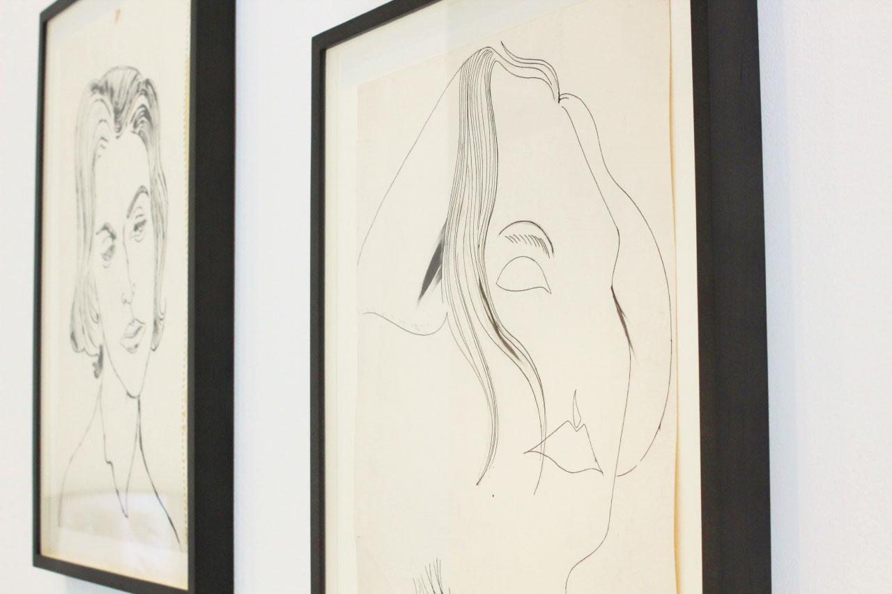 Warhol comenzó su carrera como artista comercial, haciendo ilustraciones para revistas encanto y Harper’s Market En su firma de la técnica de «línea de blog». Las delicadas líneas casi manchadas de estos dibujos se producen presionando una hoja de papel limpia sobre un dibujo de tinta aún húmedo. Varios trabajos en la galería tienen imágenes dobles reflejadas de dos hojas de papel en el proceso. «La cabeza femenina en un sombrero de flores» (en la foto a continuación) es algo sobresaliente que revela el área del lápiz que nunca ha sido entintada en la página correcta. Observe cuidadosamente la P del Unmengine del ojo izquierdo. Incluso los bordes lacrimógenos casuales del papel y el residuo de la cinta de envejecimiento parecen contribuir a la composición general y la vida útil de cada papel. Estoy muy agradecido por los dibujos que nunca estarán hechos de esteras para cubrir estos bordes, ya sea intencional o no.