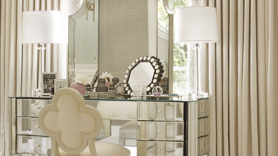 Si bien puede usar un escritorio o consola de sala de estar, tener un tocador dedicado (con cajones de almacenamiento y espejos) puede ayudarlo a mantenerse organizado, reducir la velocidad y ponerse adicto al ritual. También es importante que esta sea otra oportunidad para doblar las capacidades de diseño de interiores, ya que la mesa de maquillaje puede decorarse como el núcleo de la moda.