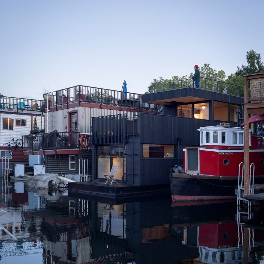 Estudio de arquitectura ir La casa flotante de la década de 1970 se ha convertido en una residencia moderna de varios pisos llamada BLATTO BOAT, que incluye una amplia variedad de Ahorrar espacio Estrategia y tres mazos al aire libre.